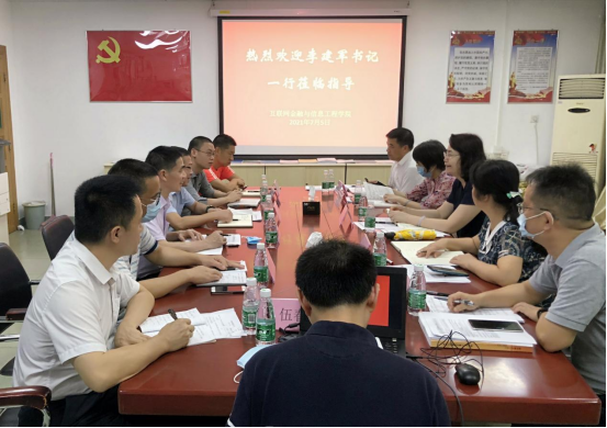 2021年7月5日,公司党委书记李建军研究员一行到bevictor伟德调研。公司党委办公室主任吴惠琴、教务处处长江金锁、员工工作处处长陈伟业、招生与就业工作处处长王中志陪同调研。调研会由互联网金融与信息工程公司党总支书记朱小焱主持,公司党政班子成员、系主任代表参加了会议。