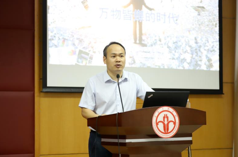 会议最后,邀请华南师范大学党委宣传部郑宇云老师作主题为“高校新媒体内容策划与运营”的专题报告,郑宇云分享了对新媒体的理解与思考,并介绍了“晚安华师”新媒体团队打造高质量内容的路径方法,并从传播者视角和用户视角对校园媒体公众号运营提出了意见建议。