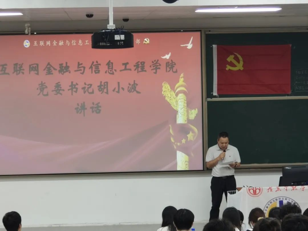 随后,胡小波书记上台讲话。书记首先对本次大会的成功举行和此次通表发展的20名同学以及顺利转正的24名同志表示祝贺。胡小波书记结合《中国共产党章程》为在场所有同志上了一堂生动的党课。他指出,要成为一名合格的党员,需牢牢记住党员应履行的义务,将全心全意为人民服务的宗旨放在心间,警醒大家切勿违反党纪党规,期望大家做到锐意进取、砥砺奋进、心系家国,做一个有理想、有信仰、敢拼搏的新时代青年。同时也希望在场所有党员要把入党作为新的契机,认真学习党章,坚定理想信念,不忘初心,拼搏奋斗,兢兢业业做好本职工作,发挥好党员的先锋模范作用,为实现中华民族伟大复兴的中国梦贡献自己的力量。