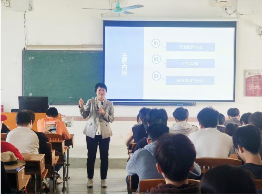 随后,何老师围绕自我认知、就业选择与行动等方面进行了详细讲解。她强调职业规划是一个长期的过程,需要不断地调整和完善。同学们要根据自己的兴趣、特长和能力,结合市场需求和行业发展趋势,制定切实可行的职业规划