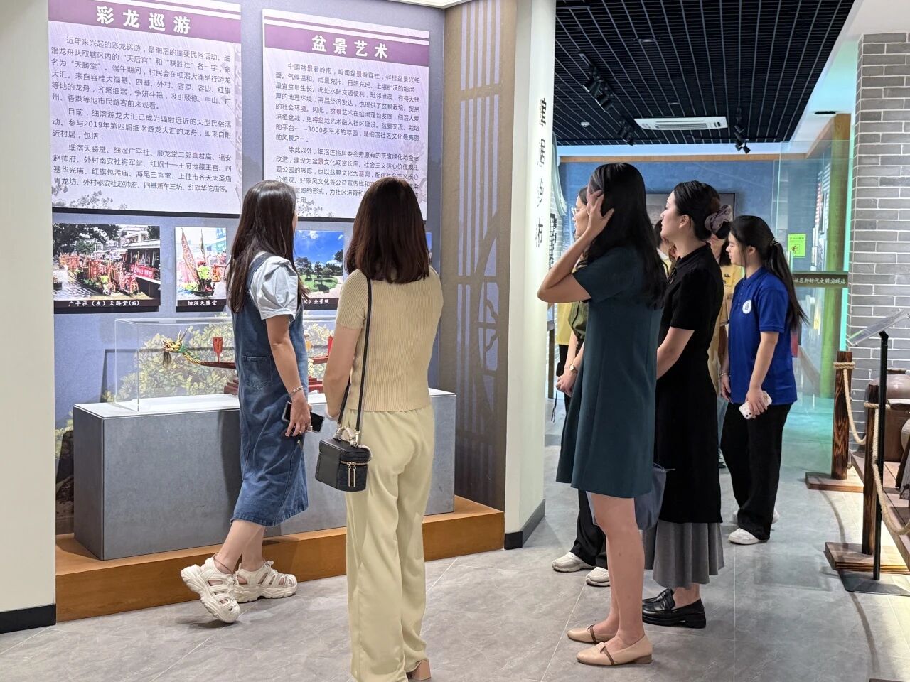 在活动期间,服务队前往佛山市顺德区容桂街道细滘社区进行实地走访。在走访过程中,队员们近距离接触了细滘的特色文化与红色文化,如盆景文化、革命文化、龙舟文化等,在社工代表的耐心讲解下,深入了解细滘文化历史脉络以及当前的传承现状。