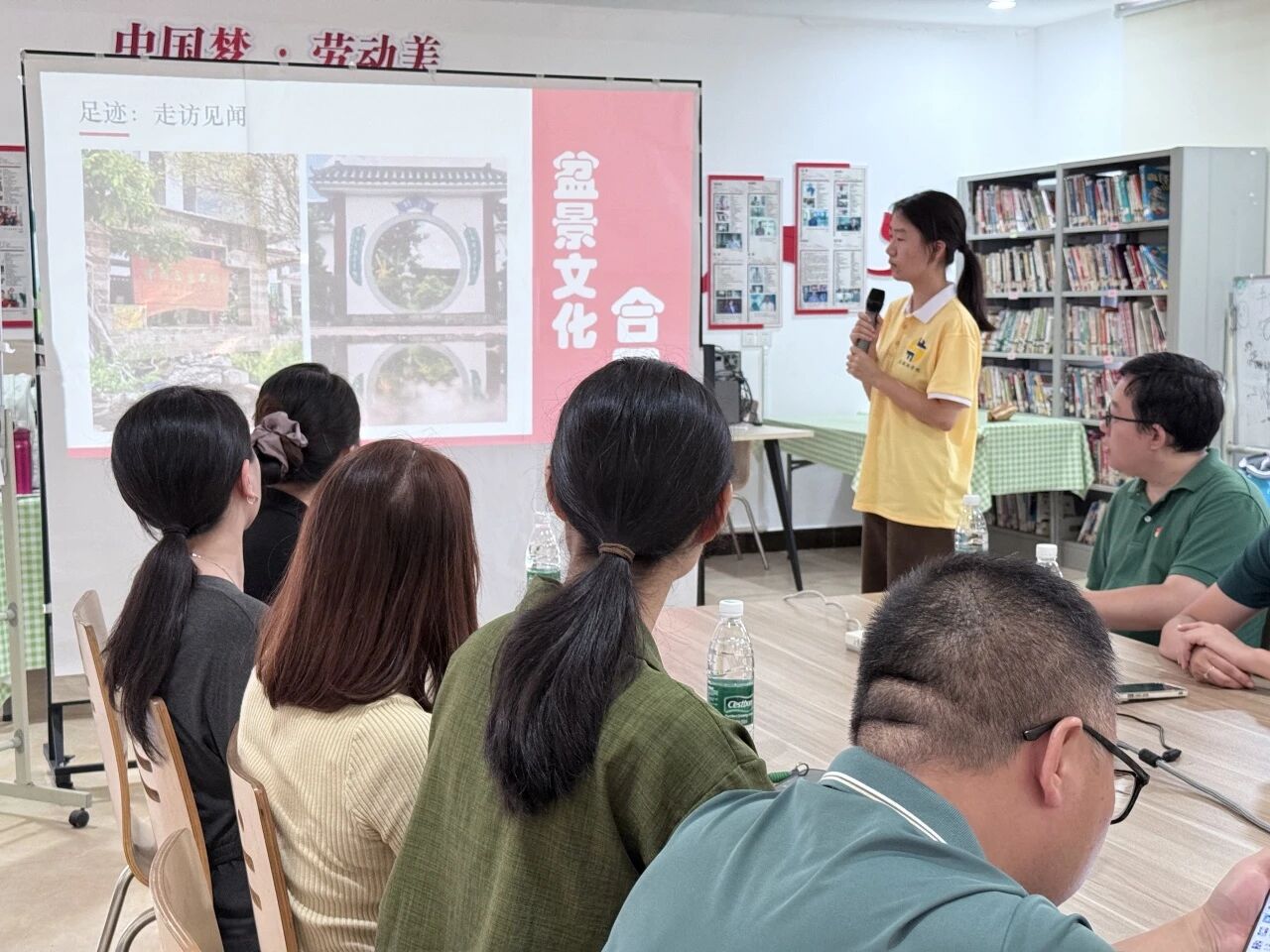 在实地参观社区建设及盆景文化后,实践团队以座谈交流会形式展开汇报。围绕 “走访见闻、感悟收获、协同结晶” 三大主题,结合实地调研经历,生动讲述了细滘社区的鲜活故事——从镌刻岁月印记的老旧建筑,到居民日常生活的温暖片段,立体呈现了社区的人文风貌。会上,实践队通过图文并茂的展示,向与会领导汇报了与社区共同打造的实践成果,直观呈现了工作推进的实效。