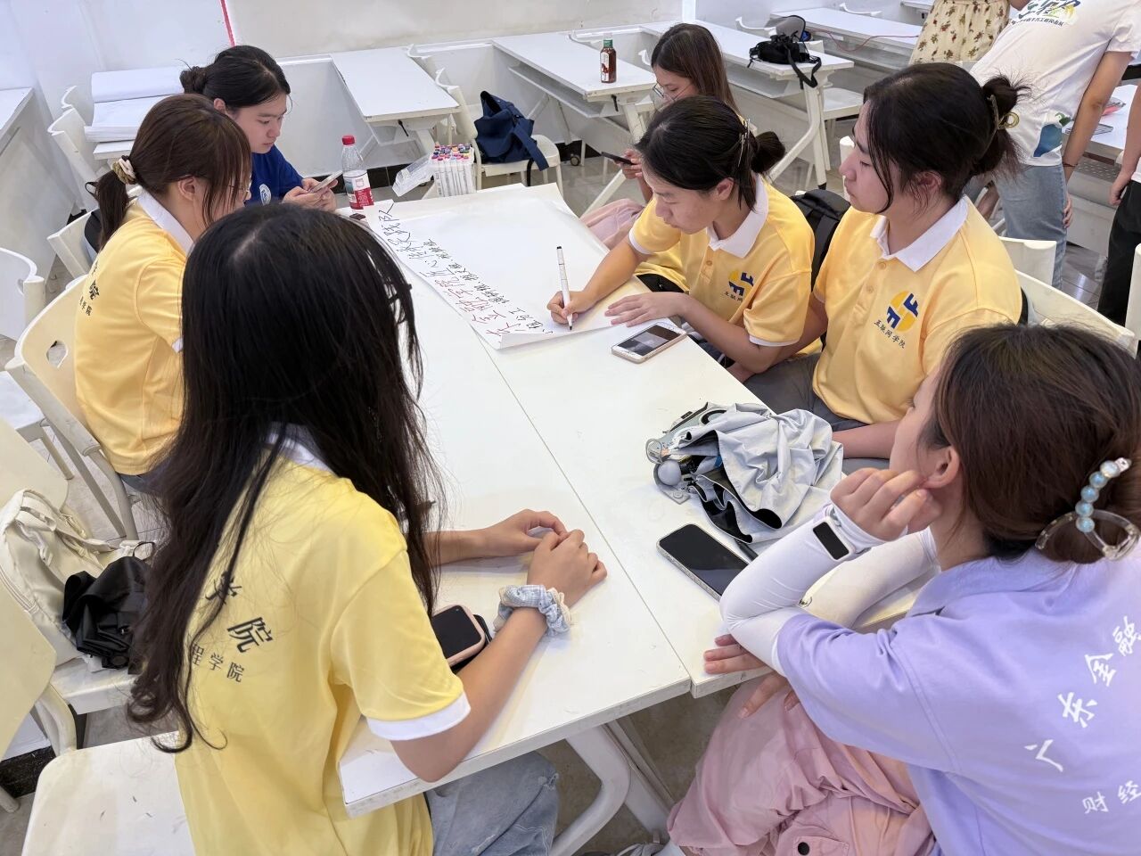 2、服务队于上午向公司领导与细滘社区党委委员李嘉惠女士汇报当前工作进度及部分成果。公司领导对队员们在实践中展现的专业素养与责任担当予以赞扬,领导指出,队员们在文化传承实践过程中,不仅将课堂所学的专业知识灵活运用,更展现出了超越年龄的责任担当,并鼓励大家将此次实践经验融入今后的学习和工作,持续为文化传承贡献力量。