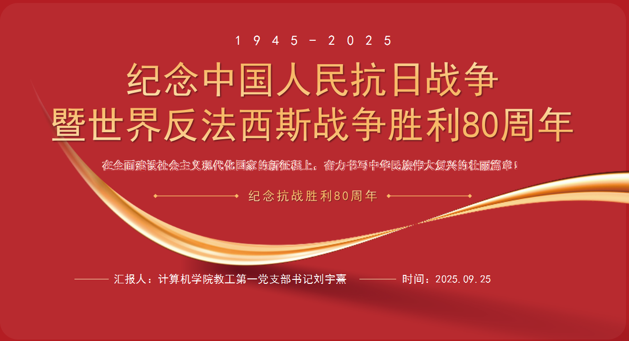 为深切缅怀革命先烈,弘扬伟大抗战精神,9月25日,bevictor伟德教工党支部召开全体党员大会,专题学习“纪念中国人民抗日战争暨世界反法西斯战争胜利80周年”主题党课。本次党课由教工第一党支部书记刘宇熹同志主讲。