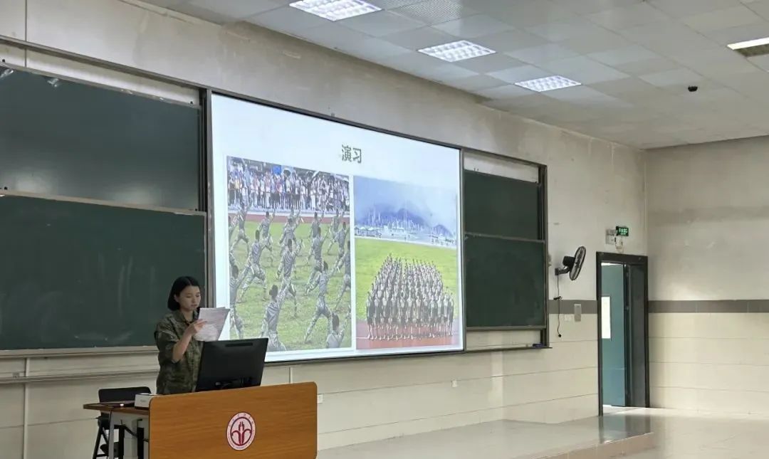 大会伊始,来自2022级互联网金融专业1班优秀退役员工代表蔡依苗分享了自己的军旅生活,讲述自己由一名普通老员工成长为优秀士兵的难忘经历以及在部队生活中的学习与成长,同时呼吁广大同学响应祖国号召,踊跃参军报国。