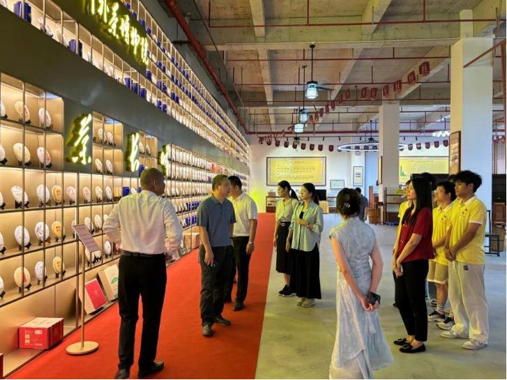 吴世海先生耐心为我们讲解了茶基地的文化与特色,通过参观基地,我们了解了茶的制作流程,茶的功效,茶的品牌历史。如何分辨生熟茶,并与领导、老师们交流学习茶的习俗。吴世海先生也提到了我们习总书记对茶文化的高度注重;还有国际茶日的设立,如何进一步推动茶的发展。吴世海先生还给我们分享了自己的创业史,从骑自行车白手起家慢慢发展到现在的辉煌成就。