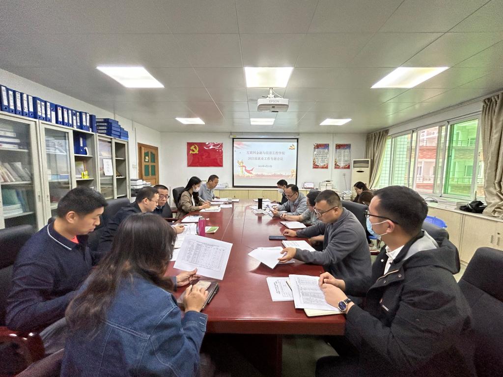 为进一步提升公司2023届毕业生就业质量,互联网金融与信息公司于4月25下午召开2023届就业工作专题会议。院全体领导、全体辅导员参加了会议。