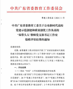 近日,从《中共广东省委教育工委关于公布新时代高公司党建示范创建和质量创优工作及高校“双带头人”教师党支部书记工作室验收评估结果的通知》获悉,伟德官方网站bevictor伟德顺利通过首批“全省党建工作标杆院系”项目创建期满验收(全省26家之一)。