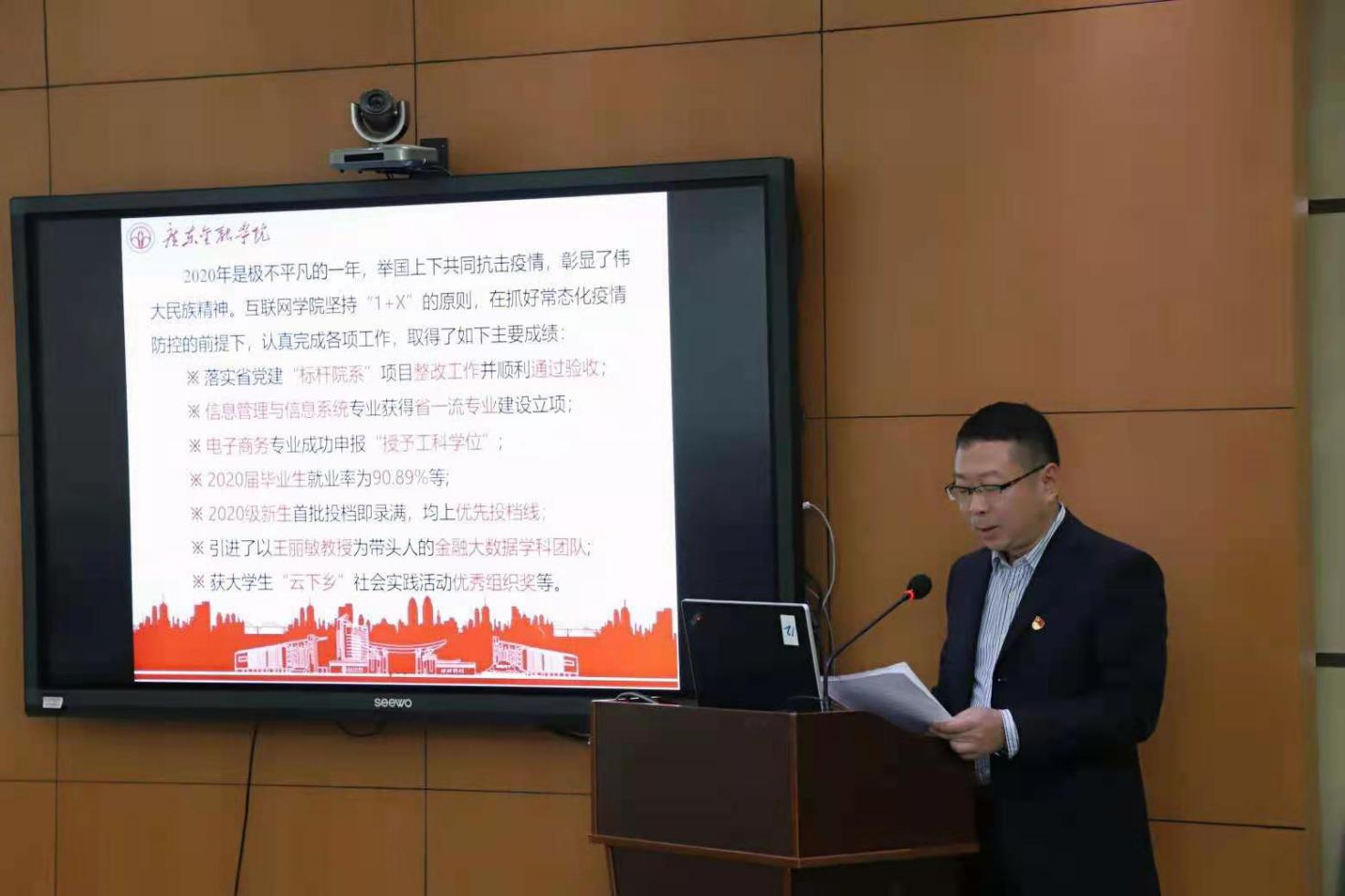 2021年1月21日,公司在教学实验中心二楼会议室召开2020年度党总支书记抓基层党建工作述职评议会。互联网公司党总支书记朱小焱参加了述职评议会,经理吴炎太教授作为特邀代表列席了会议。